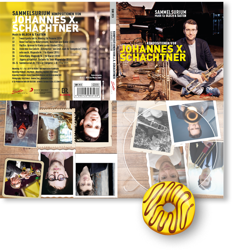 In enger Zusammenarbeit mit Hubert Haas, dem Geschäftsführer von Solo Musica, setzen wir die verschiedensten CD–Cover um. Da bei jeder Produktion auf die individuellen Vorgaben, die ganz unterschiedlichen Wünsche, Erwartungen und Kommunikationstile der Kunden eingegangen werden muss, benötigt diese Aufgabe sehr viel Feingefühl. Auch variieren die Vorgaben sehr stark: mal gibt es klare Vorstellungen zur Idee und Bildwelt, mal steht uns nur sehr wenig Material zur Verfügung. Jede CD stellt uns vor neue Herausforderungen.